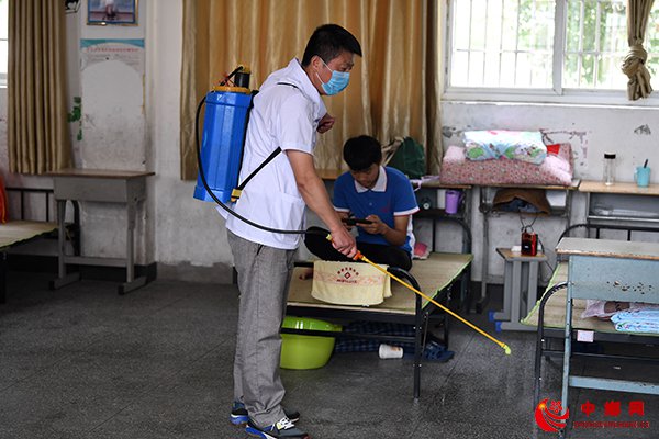 安徽望江洪水受灾村民安置点消毒 新华社记者 刘军喜 摄