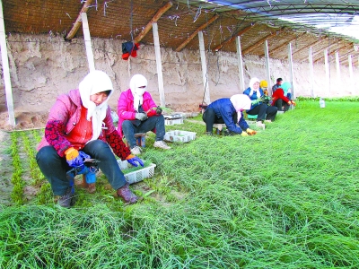 金塔县金塔镇通过示范带动、政策扶持和市场营销等有效措施,大力发展日光温室沙葱种植,为农民增收致富提供了新途径。春节期间,该镇上杰村村民蔺玉春家的沙葱受到市民热捧,获得了良好的经济收益,尝到收获甜头的他,积极和镇上联系,共同探索通过电商平台销售沙葱。