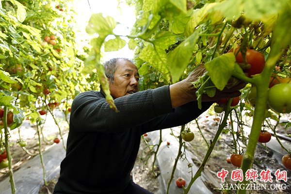 1月9日,石嘴山市惠农区燕子墩乡简泉村村民在自家大棚内采摘西红柿。