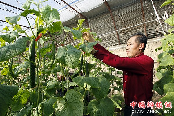 1月9日,石嘴山市惠农区燕子墩乡简泉村村民在自家大棚内打理黄瓜。