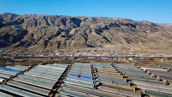 这是1月9日航拍的石嘴山市惠农区燕子墩乡简泉村村民的种植大棚。