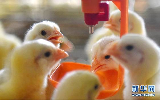 8月29日,在山东省淄博市沂源县大张庄镇南岩四村,小鸡通过自动化饮水设备饮水。 近年来,山东省沂源县大力发展车间化畜禽生态养殖生产,建立高标准的自动化养殖车间,以规模化、现代化、生态化和粪便集中循环处理的养殖方式替代传统的养殖模式,推动畜禽绿色养殖。 新华社发(赵东山 摄)