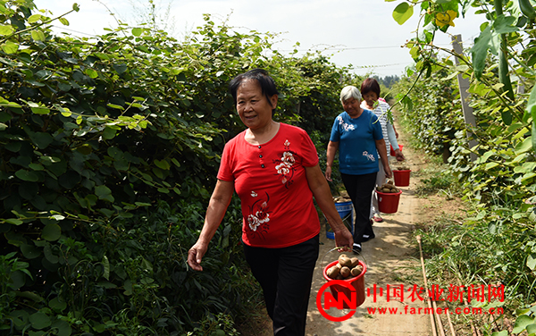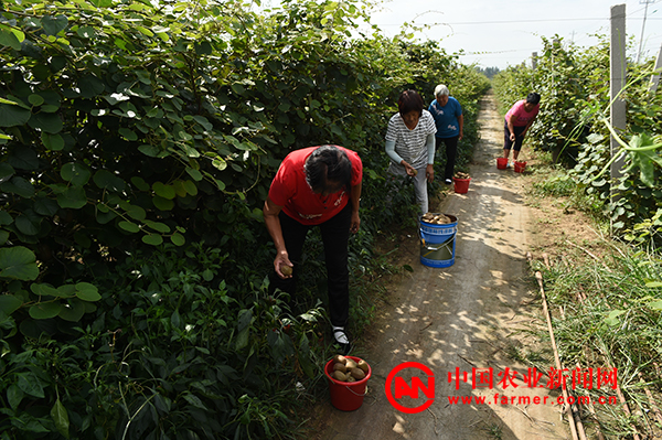 9月5日,山东省广饶县广饶街道颜三村的村民刘国明种植的猕猴桃进入了收获期。近年来,广饶县广饶街道通过“专合社+基地+农户”的模式,积极盘活农村闲置土地资源,并引进泰山一号优良猕猴桃品种,大力发展生态猕猴桃产业,不仅解决了农村土地撂荒难题,促进了农民增收,而且为农民工返乡创业创造了条件,吸引和带动了一批农民工返乡创业。 刘大哥告诉记者,今年种植的猕猴桃略有增产,亩产可达2000公斤,价格为每公斤16到18元。猕猴桃销售主要依靠游客观光采摘和订单收购。