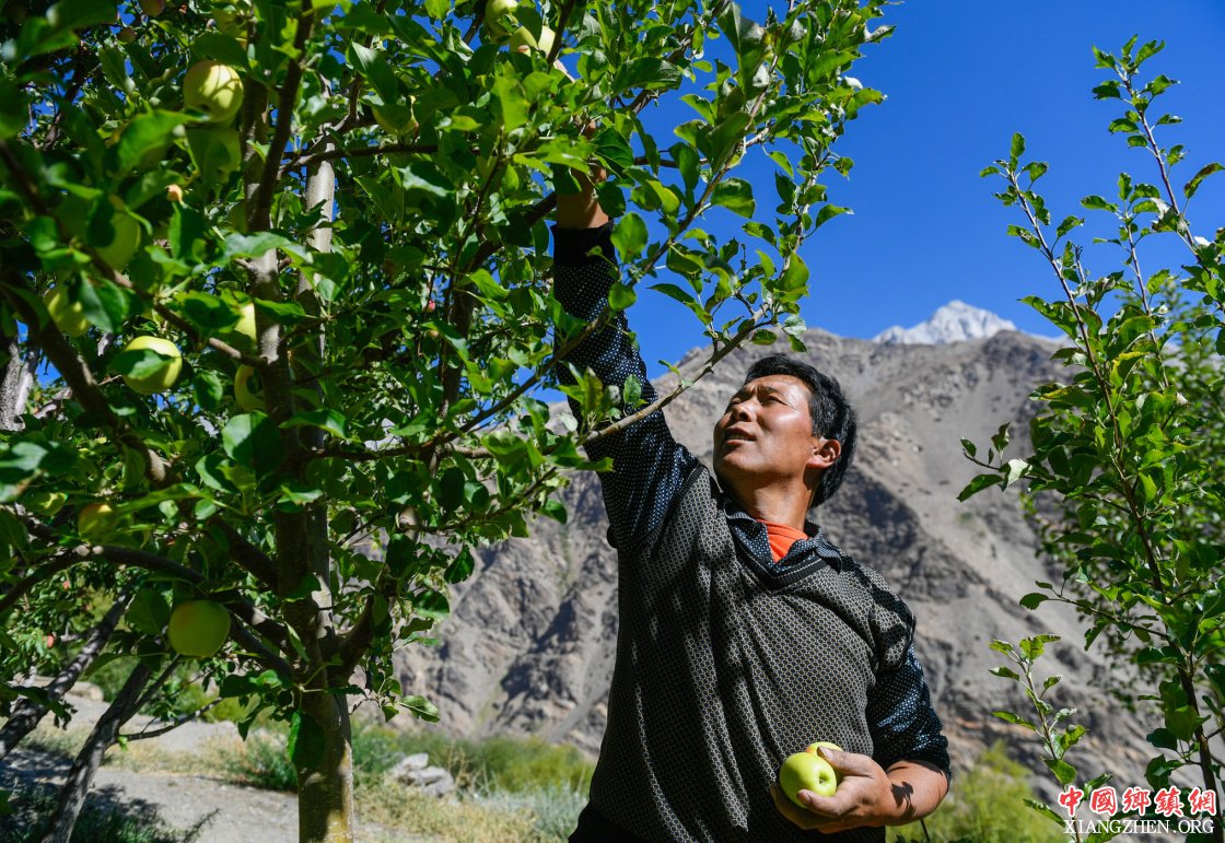 这是底雅乡什布奇村村民土旦在采摘自家种植的青苹果(9月15日摄)。