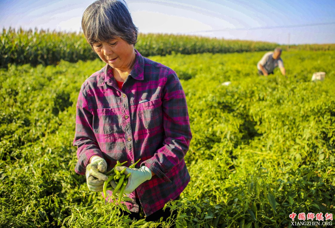 9月28日,饶阳县留楚乡影林村的种植户在摘辣椒。