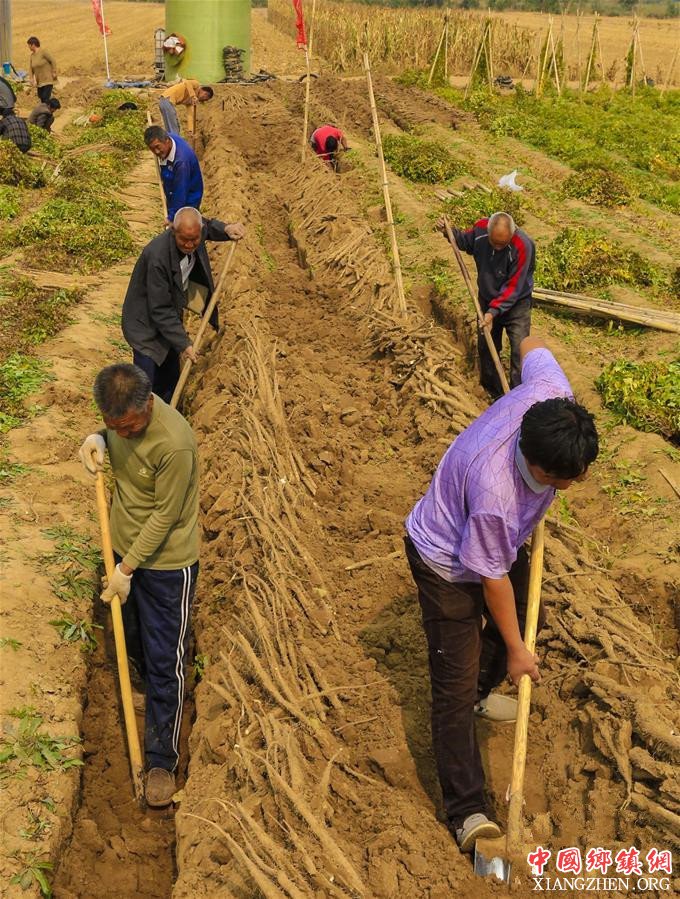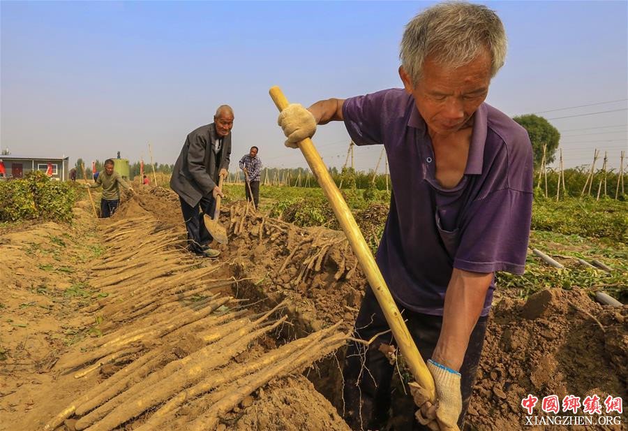 10月12日,安平县一家白山药种植合作社的农民在收获“小白嘴”白山药。 新华社记者 李晓果 摄
