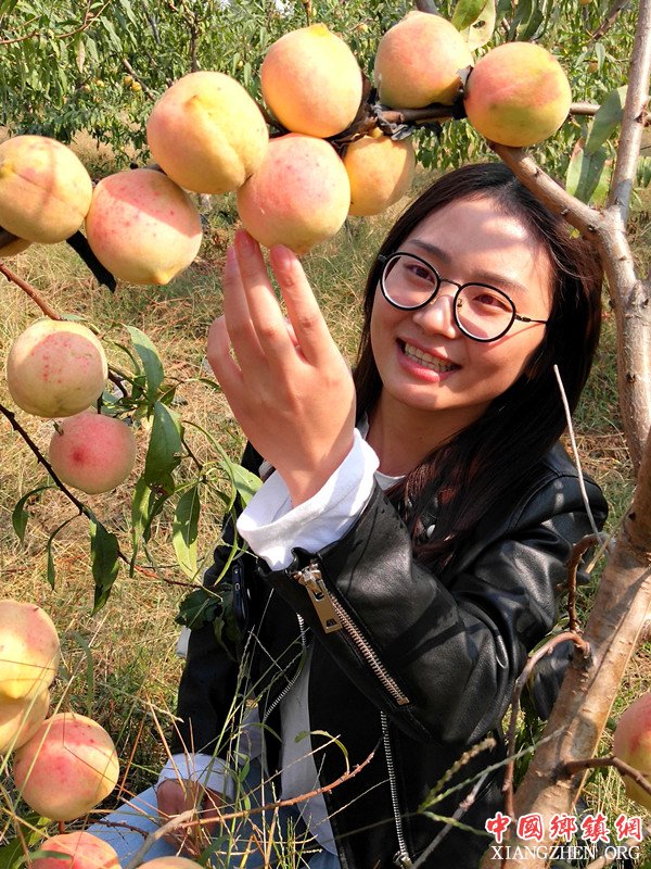 (中国乡镇网山东讯)10月13日,在山东省郯城县马头镇黄金殿村蔬菜瓜果基地采摘园内,一位游客被硕果累累的雪桃所吸引:白里透红的雪桃让人垂涎欲滴。