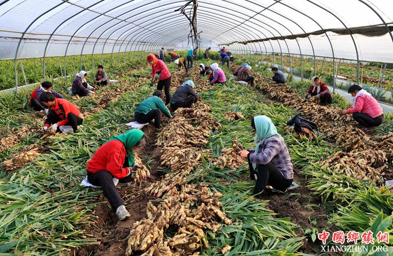 10月29日,河北省唐山海港经济开发区姜来乐家庭农场的工人在收获生姜。