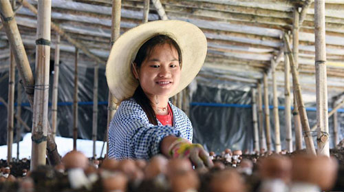 8月6日,工人在丘北县双龙营镇新沟农场种植基地采摘姬松茸。 近年来,云南省文山壮族苗族自治州依托当地气候、地理优势,大力发展姬松茸种植产业。据了解,目前当地以“公司+合作社+农户”为主导的发展模式在全州建设姬松茸种植大棚2500多座,有1200多户农户参与种植,户均年收入2.5万余元。 新华社记者 杨宗友 摄